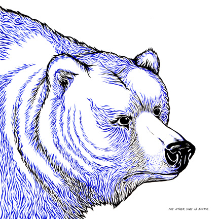 “In a mostly deserted indoor shopping mall (the kind that used to be everywhere in California) I’m looking for a shop where David Jackman is supposed to be doing a … lecture? Or maybe a performance? When I find the room, it looks like a classroom at a community college. Mr. Jackman is already there. Apparently the few photos I’ve seen of him are all wrong: he’s actually an elderly Amish fellow, with a stereotypically Amish-looking white beard (sans moustache) and looking the very picture of style in an Irish tweed suit and cloth cap. Whatever else was supposed to be happening is instantly forgotten when I spot a large fold-out table against the wall piled high with new Organum LPs. All the albums have white sleeves with hand-drawn covers and hand-written text, and somehow I know that all of the LPs inside are one-sided. Everything is very reasonably priced and I waste no time grabbing as many of the gorgeous little darlings as I can carry. The cover of the one on the top of my pile has a stylised bear’s head drawn in blue and black ink on the front, and a similarly rendered fox (with overlarge ears and an oddly-proportioned body) on the back. The title, or perhaps just an explanation, is handwritten on the front: ‘The Other Side Is Blank’.”