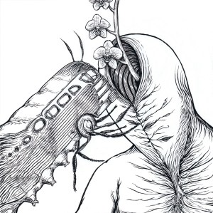 All three original ink drawings for the irr. app. (ext.) + At Jennie Richie ‘Night Wearing Feathers’ LP package (‘Night Wearing Feathers’, ‘Sunshine Bus Rider’ and ‘Intermediaries’), plus a signed copy of the LP [edition of 234] and a signed copy of the ‘Unknown Invertebrate Drama’ collaborative C33 [edition of 66]