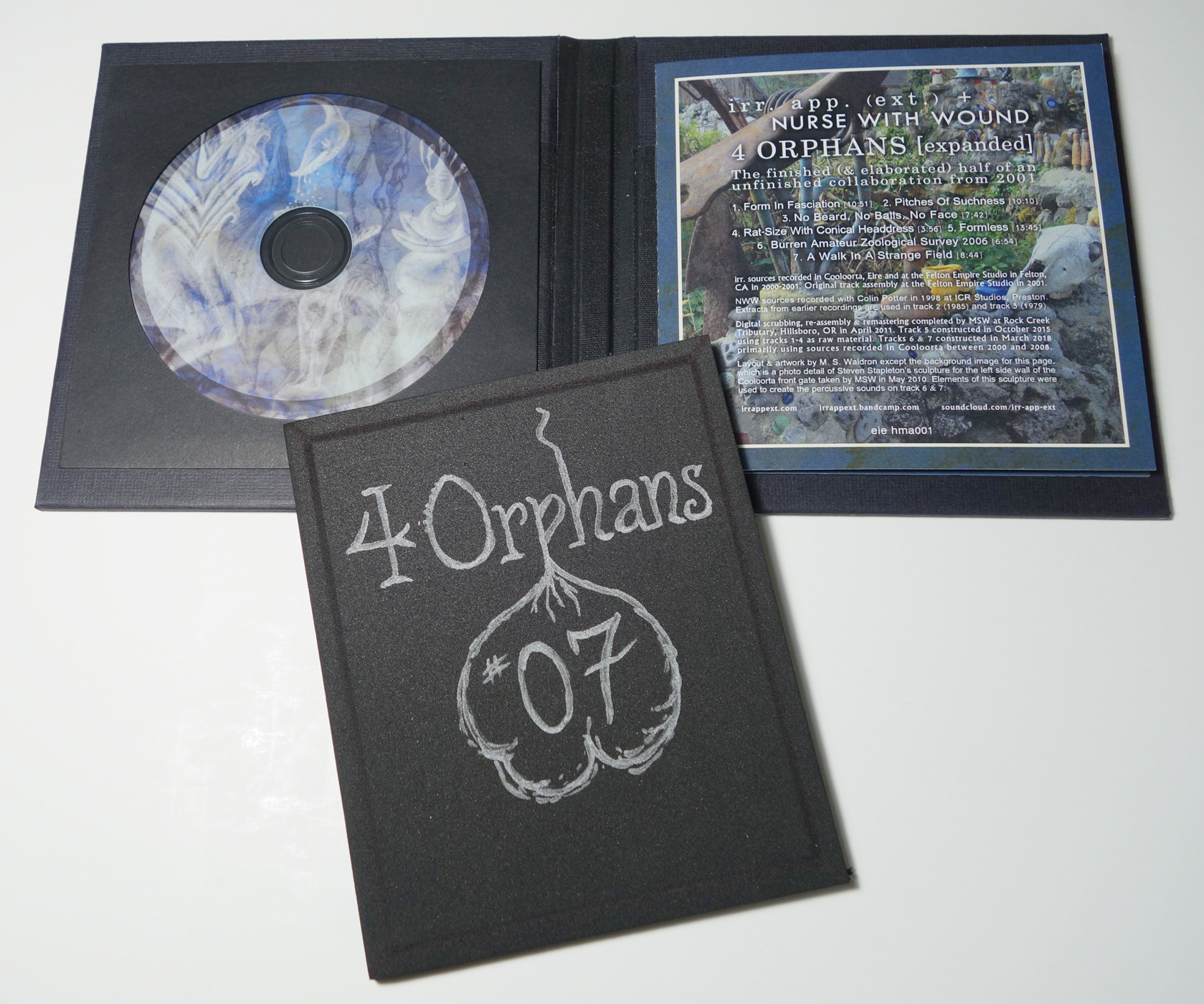 This is a handmade, hardbound-packaged CDR version of the irr. app. (ext.)/Nurse With Wound ‘4 Orphans’ collaboration.